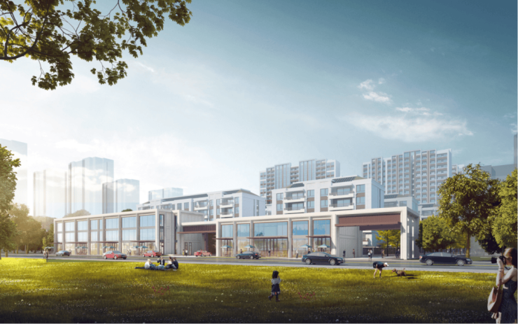 再次,项目在南侧临近永泰路上打造有2栋社区配套建筑,服务于社区的同时有效阻隔道路噪音。