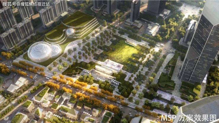 MSP方案:以蓝绿网络为媒介,通过地下商街、人车共享界面、活动草坪、社交媒体花园等手法构建景观与商业、文化无界融合的中央公园,形成融合生态智慧与海派街道文化的公共文化生活中心。