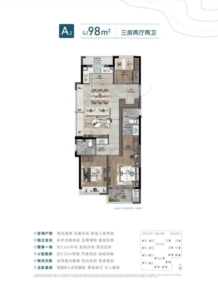 以98㎡边套为例,大尺度面宽,约5.6米超大飘窗,每日与阳光和风景撞个满怀;超大双明卫,干湿分离设计,让精致感由洗漱细节滋生。此外,全屋配置中央空调、地暖、新风三大件,居于家中,可感受四季如春的曼妙,真正的让空间回归生活,让时代青年感受品质栖居的美好。