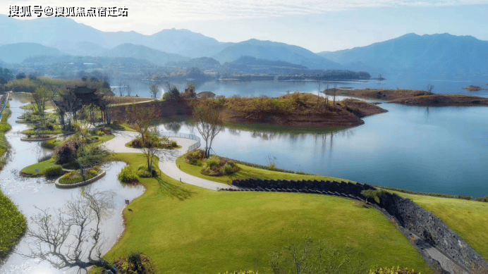 【设计理念】整体建筑呈现新中式风格,提取千岛湖自然山水元素与现代社会的居住环境相交融。她在半岛福址之上,得山环水抱,藏风聚气之利,揽青龙来水、白虎出水之势,继承人丁兴旺的家族理想。