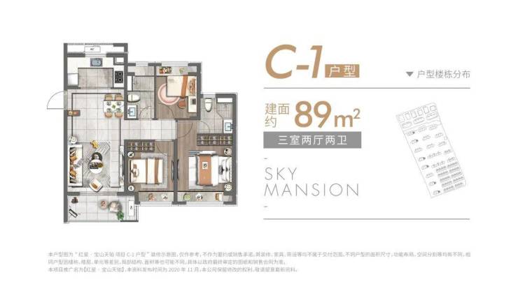 除了建面约89㎡的洋房,建面约83~89㎡高层户型也各有所长,均是三房设计,无论是从结构布局,还是空间利用皆相得益彰,承载一家人的美好生活。高层户型如下: