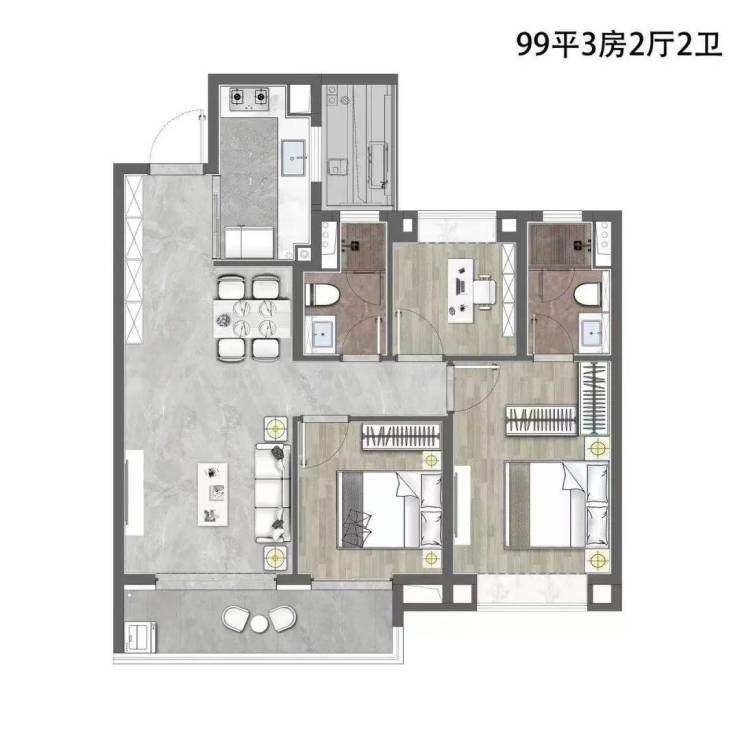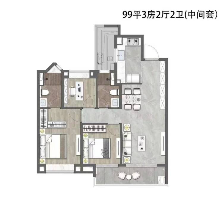 建面约99㎡3房,预计总价850-1050万