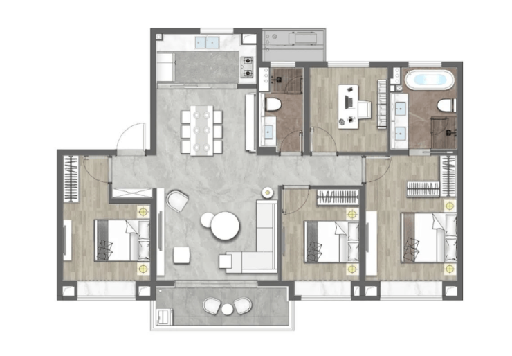 亮点:层高约3.1米,主卧豪华套房,尺度感十足,主卫可放双台盆+浴缸!并且该户型南向直面约5700㎡公共绿地,几乎是朝南无遮挡,低楼层也能保证充足采光!
