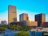 约200米的塔楼建筑,由Aedas主笔设计,挺拔洗练如山峰,清透的玻璃幕墙几乎融于湛蓝天幕中;垂直向下的线条,则恍若一波三折的叠瀑,在“山体”与“岩石”间碰撞,再飞流直下。