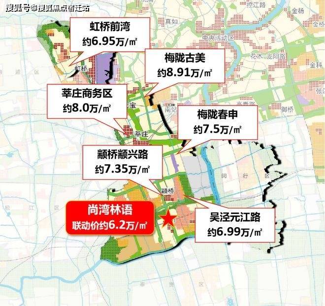 环顾整个闵行,也是价格谷地的存在。从整个闵行主城区来看,与尚湾林语同样在颛桥的颛兴路的项目,以及吴泾元江路的项目,价格已经直逼7万/㎡。