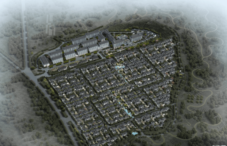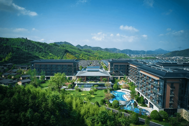 设计理念:以唐风为骨、山水为魂,遵循天目山山脉肌理,传承中国传统造园之法。采用围合、里坊、街巷等布局,飞檐翘角、白墙黛瓦,展现中式美学。