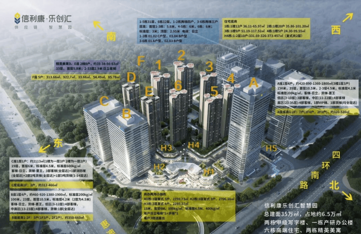 信利康乐创汇,项目位于金山新城南部,占地约6.5万平,总建面35万平,由2 栋甲级写字楼、1 栋产研办公楼、6 栋高端住宅、2 栋公寓、4 栋独栋和一栋联排商墅组成.