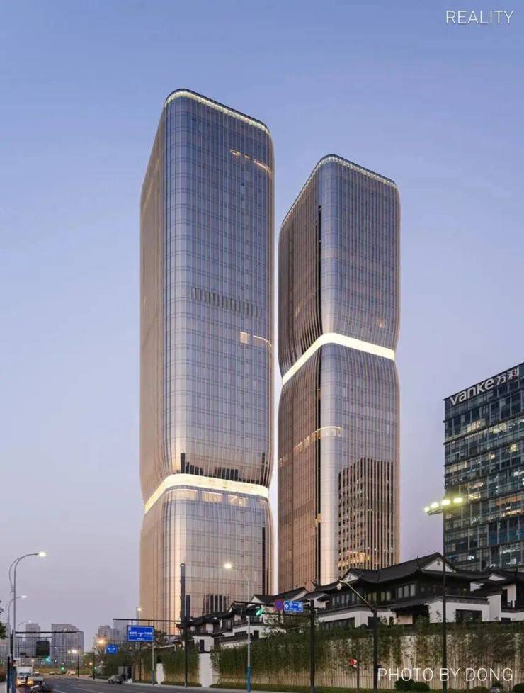 杭州望廷中心位于钱江世纪城板块,紧邻杭州亚运村,地段核心。项目由两栋150米高的双子楼组成,定位为集商务、居住、休闲于一体的超高层建筑,总建筑面积约9.08万平方米,采用现代简约设计风格。