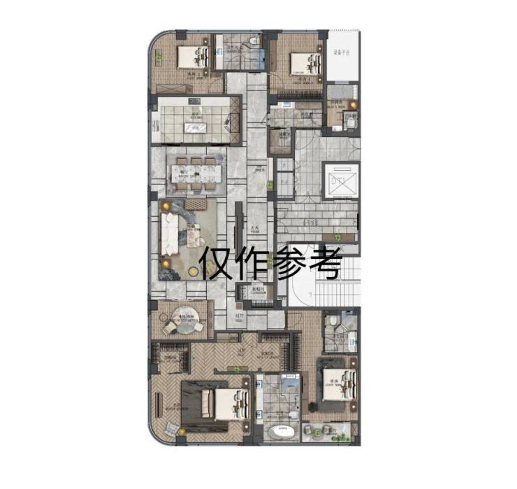 卧室采用双套房设计,其中主卧拥有270°的宽幕视野,随处可见的自然光照,将小区中心景观尽收眼底。室内功能布局齐全,适合多口之家的起居,