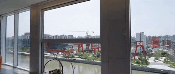 这扇窗户可以电动开启,城市高处的风,裹着钱塘潮的气息,自西湖群山吹到你的餐桌。窗外是千年古运河的流淌,窗内是一层一家族的殿堂。