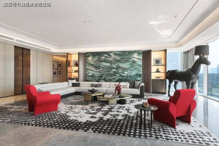 客厅地面是劳伦黑金和雅典白玉大理石拼花,挪威绿背景墙的水纹倒映着运河的波光,沙发是围坐的天伦之乐,茶桌有闲适的品茗之美,展陈你从苏富比拍来的名画,圆桌觥筹交错享四海美食,阳台是闺蜜们欢笑的下午茶,也是孩子们欢腾的游乐场。