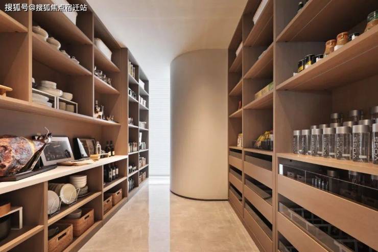博世6件套,蒸箱烤箱洗碗机一应俱全。厨房旁边竟然还有个专门的食品储藏间,一格格收纳得井井有条。