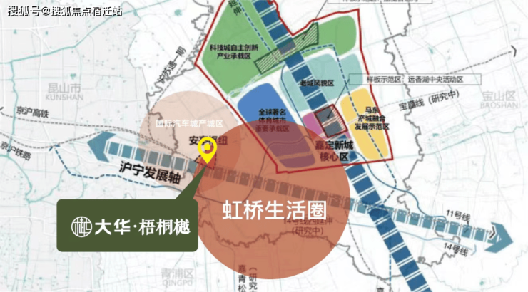 项目距离11号线上海汽车城站约2.4km,不算真正意义上的轨交房。轨交14号线横亘安亭境内的规划建议,也已提上日程。