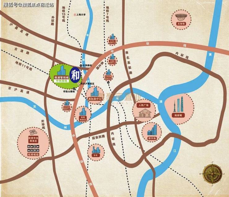 项目位于上海七大中心城区的普陀区桃浦板块,中心城区的西北门户,距中环线仅1公里,上中环后即可到达人民广场、虹桥枢纽、陆家嘴。