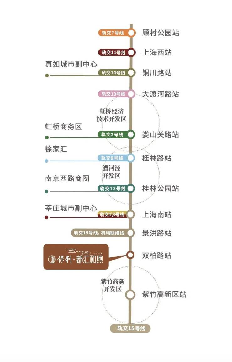 项目距离15号线双柏路站直线约500米(数据来源于百度地图测绘),贯穿上海南北3大科创园区,串联9所高校10个校区,与12条轨交快速换乘。