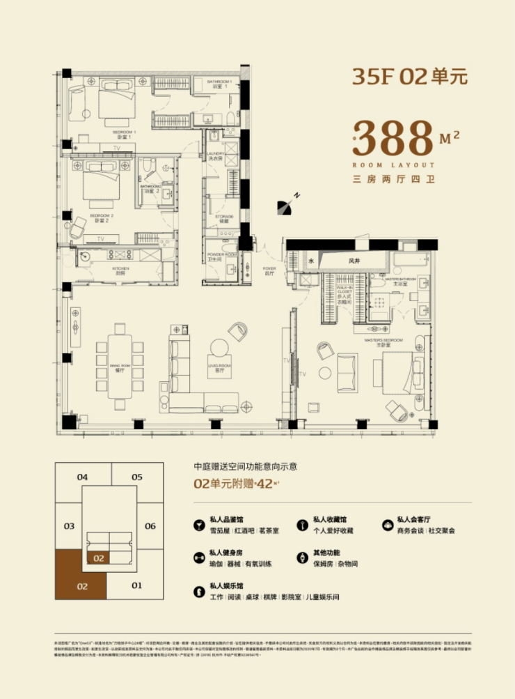 大平层公馆有两种装修风格, 3.4米层高的现代风格和4.8 米层高的新古典,特别是 4.8 米层高的新古典风格,市面上绝无仅有,真正体现了稀缺与奢华。