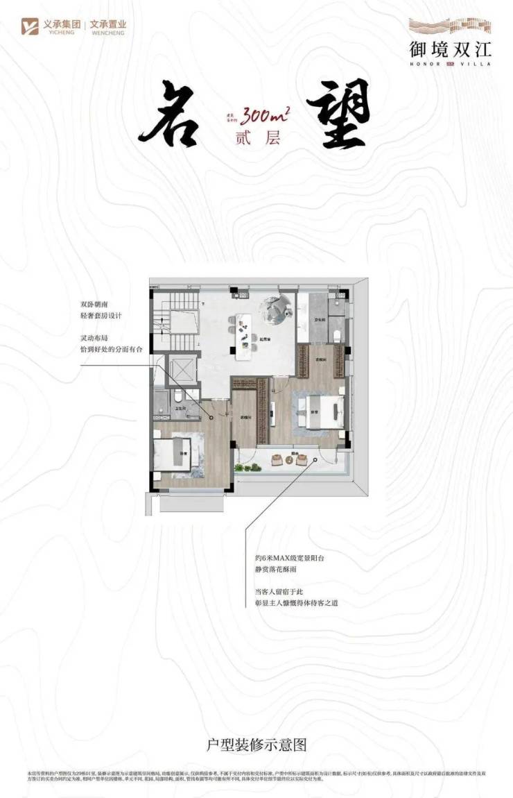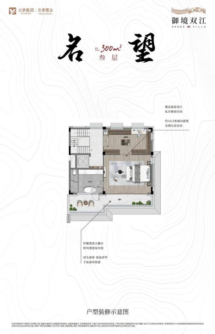 御境双江建筑面积约300㎡名望户型,以稀缺的独立入户形制,实现南北双围合庭院,南向有约10.2米大面宽;一楼270°轩窗采光,暖阳和窗景“透”入客厅深处。二、三层均为套房设计,MAX 级宽景露台,揽景入室,带给主人雍容雅致的居住体验。