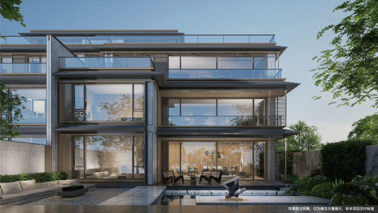 建面约209-460㎡的院墅,邀请了国际知名设计大师,以“宋韵现代”的理念,遵循“师古不泥古”的原则,再现宋代望族雅集风采。整个小区仅设计了321余户合院住宅,其中独栋更是仅有12套。