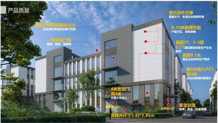8-10m超宽柱距,楼上配置独立卸货口,采光优通风佳。