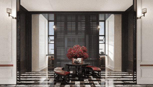 生动的海派经典场景,还从室外的园林景观延伸到了室内的公区。比如涵盖健身、阅读、宴请等多重空间的架空层,能让业主足不出户享受现代功能的同时,感受海派的优雅萦绕。