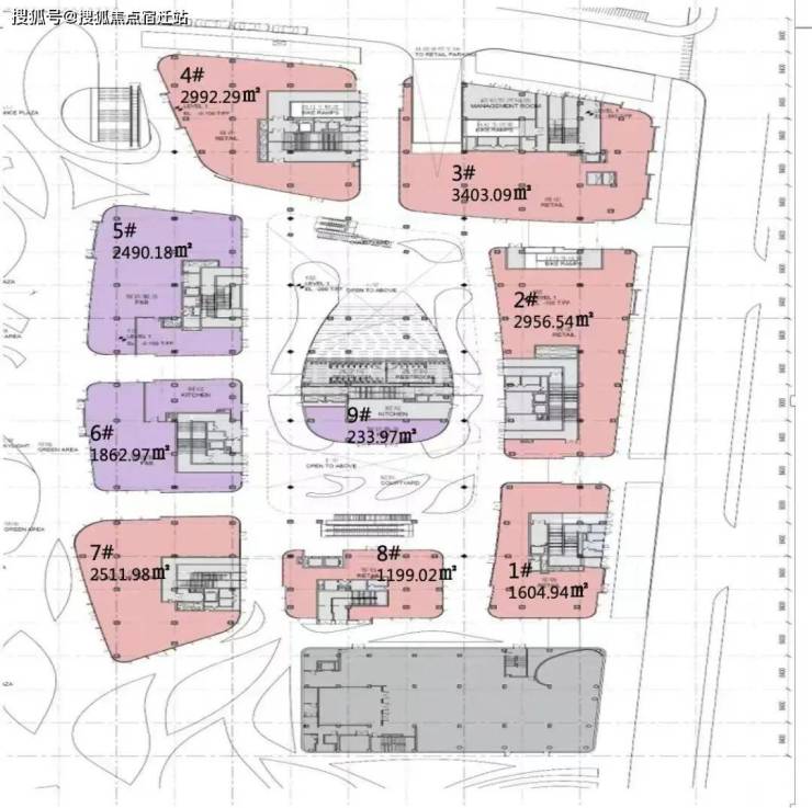 总部云端办公41层(3至43层)约9.86万平方米,单层约2500-2800平方米。
