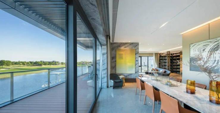 美兰天地私享城市风光,打造一方水岸秘境,更运用大面积玻璃墙体,打造无切割方正空间,3-5层玻璃建筑群落,以约0.4容积率散落湖畔,270°寰幕空间设计,置身其中,宛如驾御于果岭之上,是时代层峯人物理想的私人会馆。
