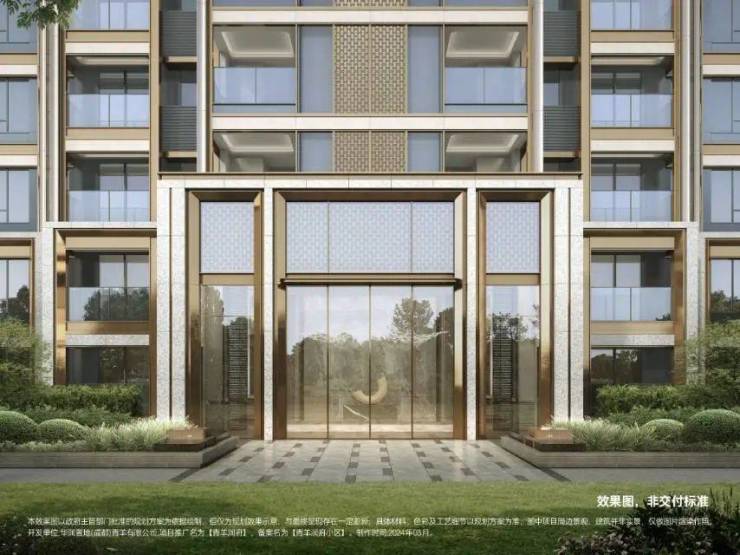华润青羊润府位于成都市青羊区蔡桥街道,总占地约66.5亩,总建筑面积约12.9万方,容积率仅2.0,绿化率达35%左右。项目包含11栋15-17层左右的小高层及两层情景式特色商街组成,全部为2T2小高层及高层,全部为南北向板式结构,最大可拥有百米阔尺楼间距。外立面为大都会建筑立面设计,以高级灰为底色,竖向框体为浅香槟色铝板+横向香槟色金属漆与米白色真石漆勾勒建筑形象,超大窗墙比让业主的采光、日照、通风、视野与景观都处于最佳排布。户型面积约112-192㎡,以四居为主力户型,是当下青羊稀缺的纯大平层改善住区。