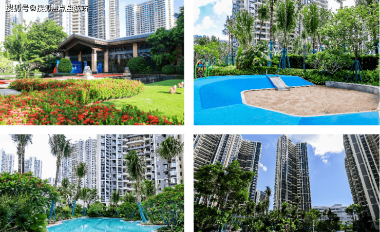 小区结合海南地域特色,建筑围合成中心花园,设计了泳池、儿童游戏及休闲主题式“泛会所”,并种植海南本地的乔灌木,配置四季常开的花卉植物的核心绿地作为主景观节点,为居民提供公共活动聚集、休闲、健身娱乐的休闲场所。
