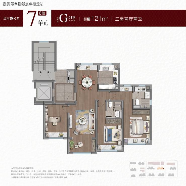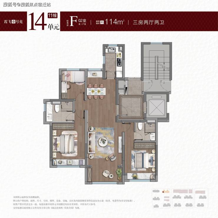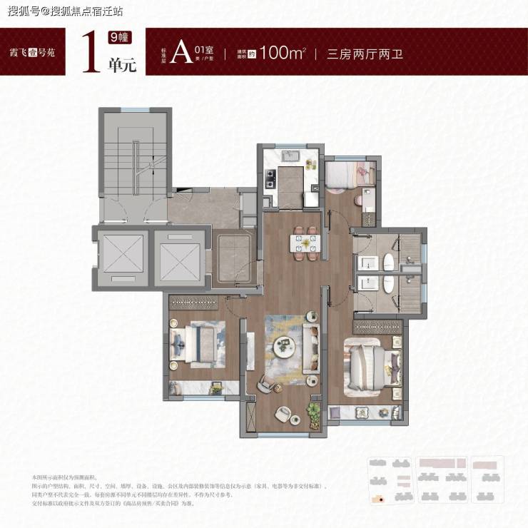 建面约100-101㎡户型,拥类独立电梯厅,无连廊+飞机户型南北通透。