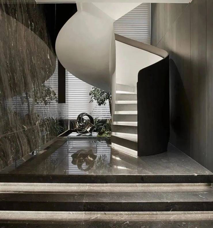 卧室空间表达的是都市新贵对于繁华与质雅的思考,浮华过后终归寻求自我的沉静,褪去华丽的形态与材质,感受到那一份舒适与安宁。卫浴空间,运用了现代艺术化的手法,隐隐约约具有东方的气质,灰白调性的运用亦是经典。