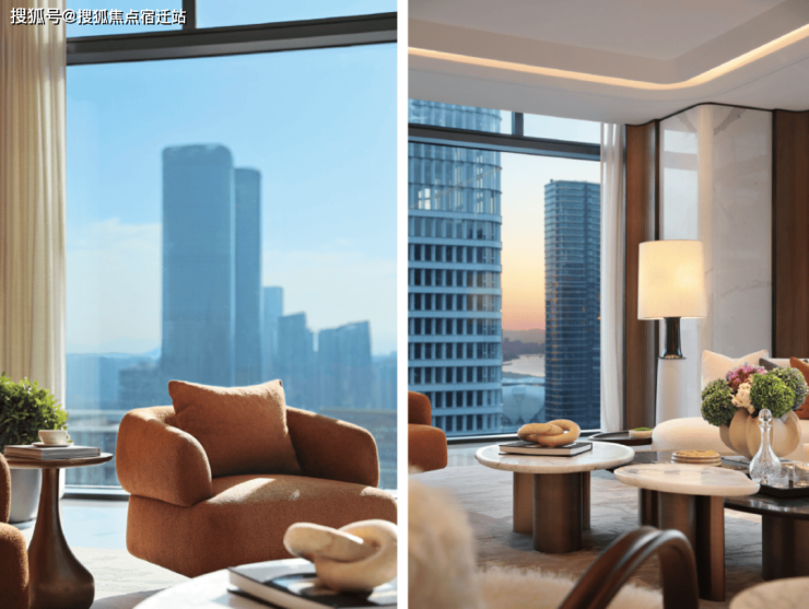 客厅是约18m的看江面,(建面约)160㎡的餐客厅,270度落地窗外,是杭州之门、莲花碗、国际博览中心,这座城市最耀眼的心跳,与你一起闪耀。