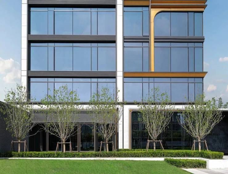 外立面让人一眼心动,铝板、大面积玻璃、釉面陶板与金属框线,构成的「飞虹屏」,有足够的辨识度。