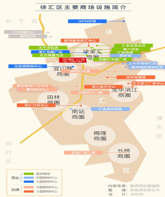 项目属于徐家汇商圈(是集购物,娱乐,办公,餐饮,教育,培训等为一体的综合性商业中心),本项目距离浦西第一高楼徐家汇中心、港汇恒隆广场800米,步行10分钟, 周边商业林立、办公聚集(美罗城、太平洋数码、东方商厦、太平洋百货)。新鸿基徐家汇中心(年底开业)70万方和恒隆广场28万方,两个两目近百万方,徐家汇中心未来的格局已定,也为本项目持续不断的输送客流。