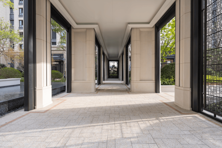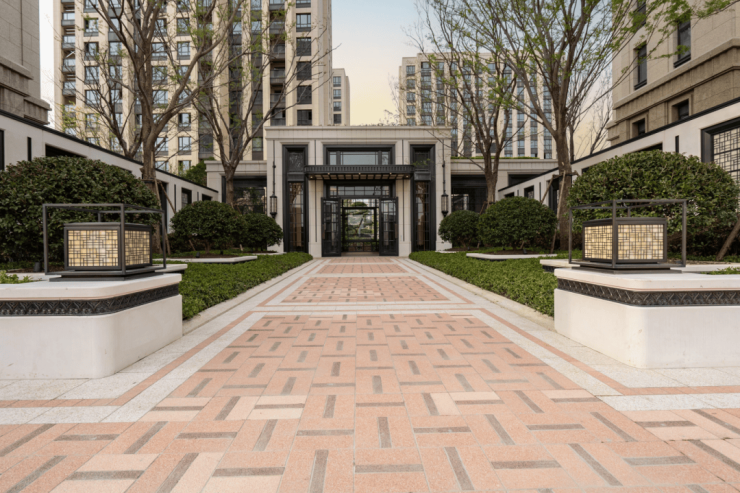 楼栋入户大堂也采用同款穹顶,同样的施工难度再来一遍,只为让业主每一次归家都能沉浸在艺术氛围里。