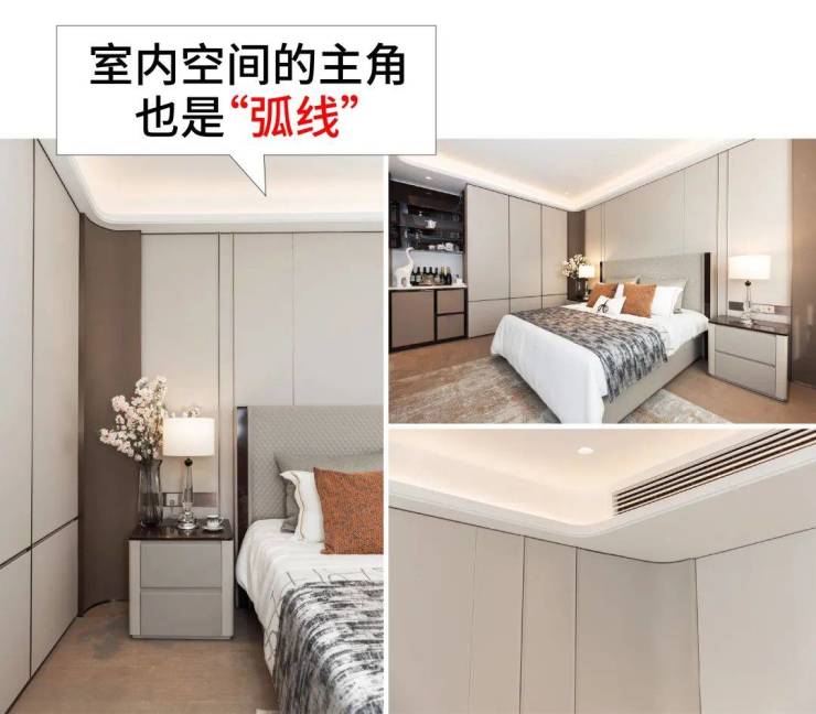 其实现在不少开发商在强调”弧线“,但像紫薇之星这样”全屋遍布“的极为少见,因为好看的代价是工艺难度高、成本高、施工周期长,无法批量化落地。