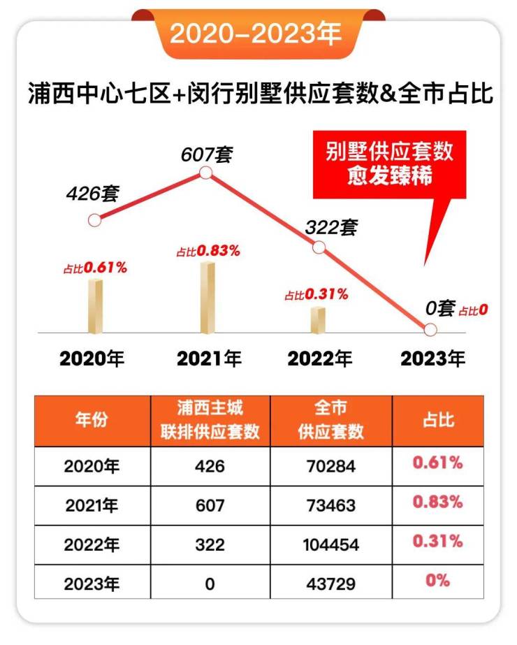 据数据统计,2020年至今,浦西主城(浦西中心七区+闵行区)每年供应联排别墅不过几百套,占比全市新房1%都不到!