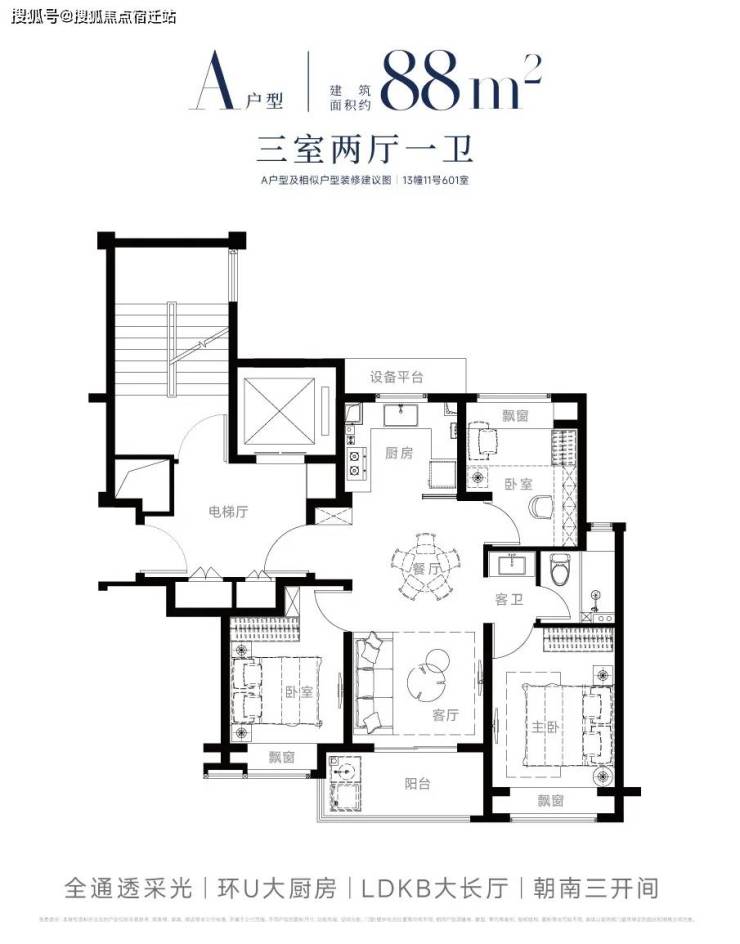 户型上,南北通透+三开间朝南,是备受欢迎的飞机户型;
