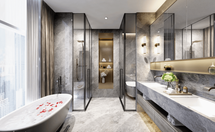 超星级酒店式浴缸设计,大空间卫浴尺度,让每一位居者在沐浴中享受无尽的奢华。构造一方极度奢享的私人国度。