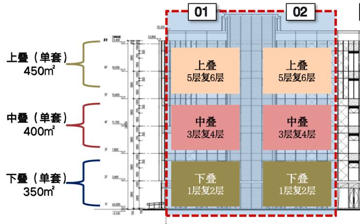 建面约350-450㎡叠加