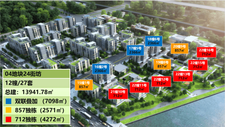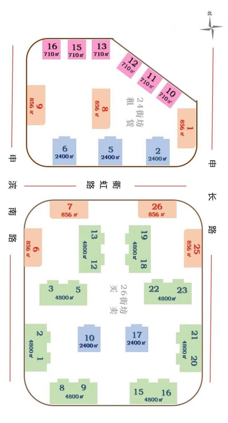 现房在售:南区二期14栋独栋商墅(856-4800㎡)及叠加商墅(350-450㎡);北区一期12栋已交付,以出租为主。