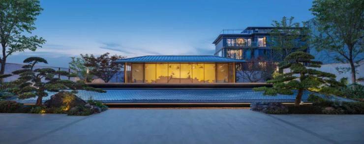 在整体设计中,以宋代美学为内核,同时汲取现代度假酒店式设计灵感,大量选用天然奢石名木、手工奢材取境造景,以汲古出新的现代表达,让度假式生活成为日常的主旋律。