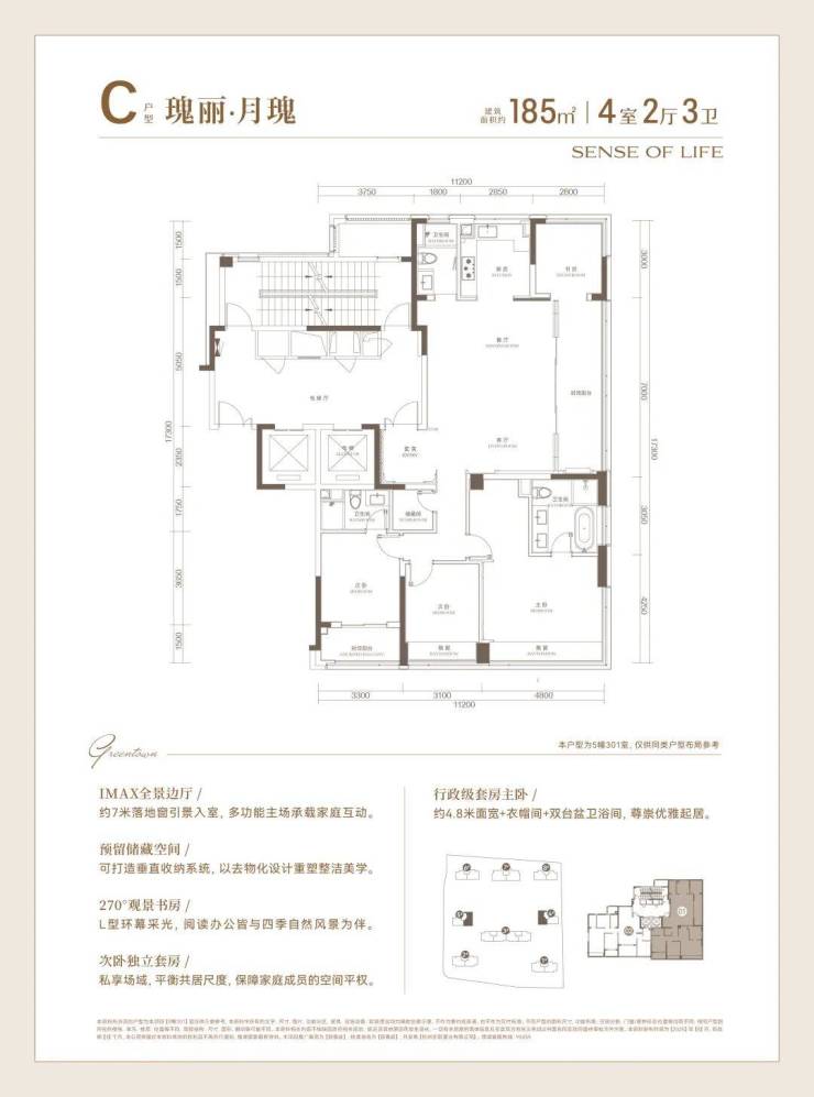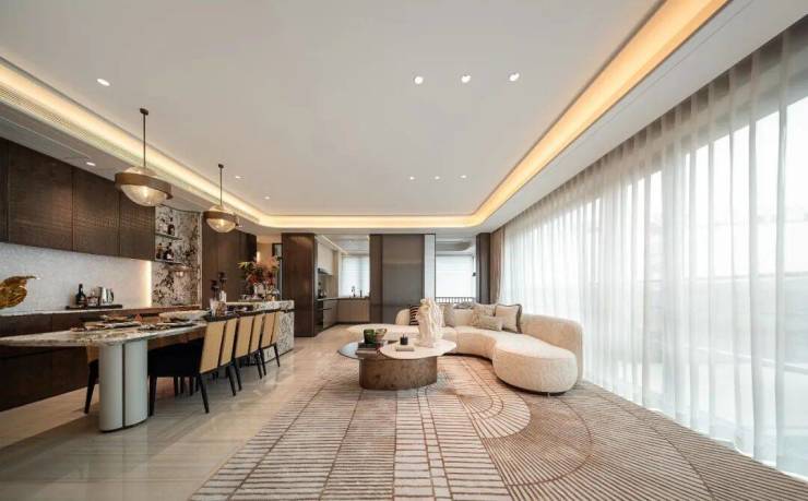 同时,不仅餐客厅有着约7米的落地门窗,书房与主卧还都坐拥270°采光面,任由晨光与暮色在家中流转,也撑起了豪门大宅的自信气场。