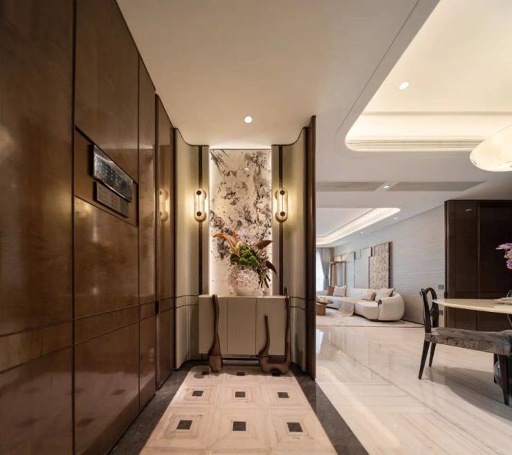 与之对应,一楼的单元门厅,也是同样风格,精准复刻香港瑰丽神髓。