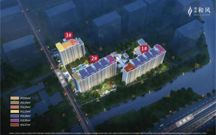主力户型:建筑面积约105㎡-137㎡双水岸低密宽邸