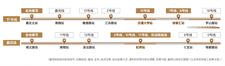 交通配套方面:项目紧邻11号线&嘉闵线(在建中)双轨枢纽,距11号线嘉定北站地铁口直线距离仅约400米,距嘉闵线城北路站(在建中)直线距离仅约700米;双地铁加持,近享绕城高速,立体交通网络,畅达全城!