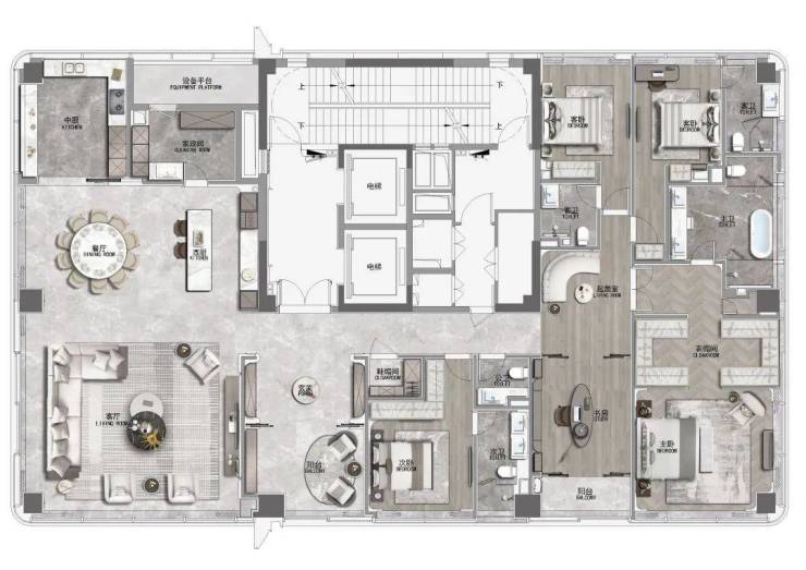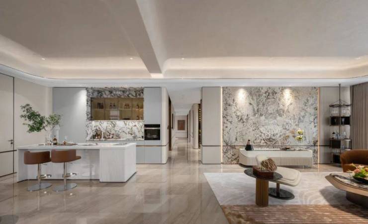 珍贵的土地,值得涵养高贵的生活。在建筑面积约410㎡样板中,大师设计精琢奢华的本象,在层高4米的朗阔场域中,打造270°巨幕观江视野,超大LDK家庭社交中心,为未来居者盛载流动且美好的生活情境。