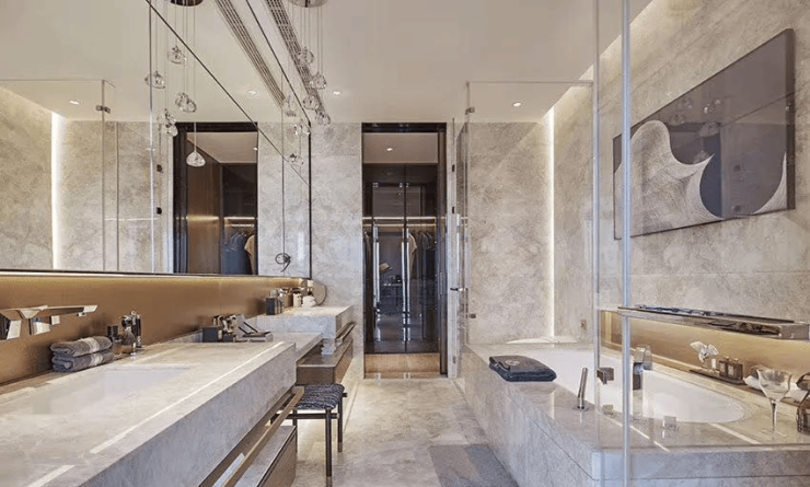 从约460㎡新中式风格(B户型)的奢华大平层到约460m²现代简约(阿玛尼)风格(C户型),于每个细节处都彰显着精工巧夺。