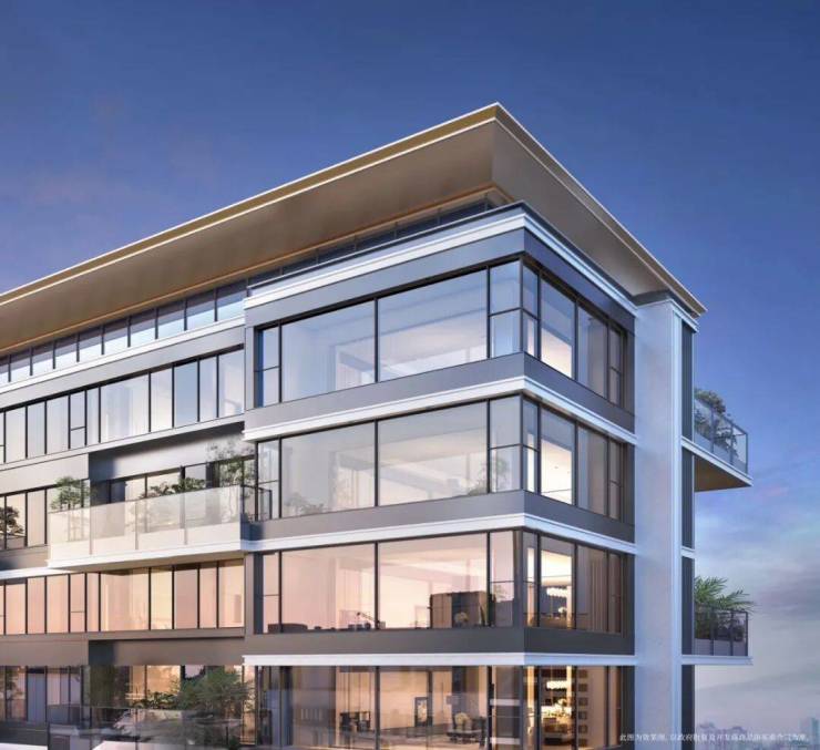横向极简线条,勾勒美学肌理;大面积玻璃,虚实有致,消隐无界
