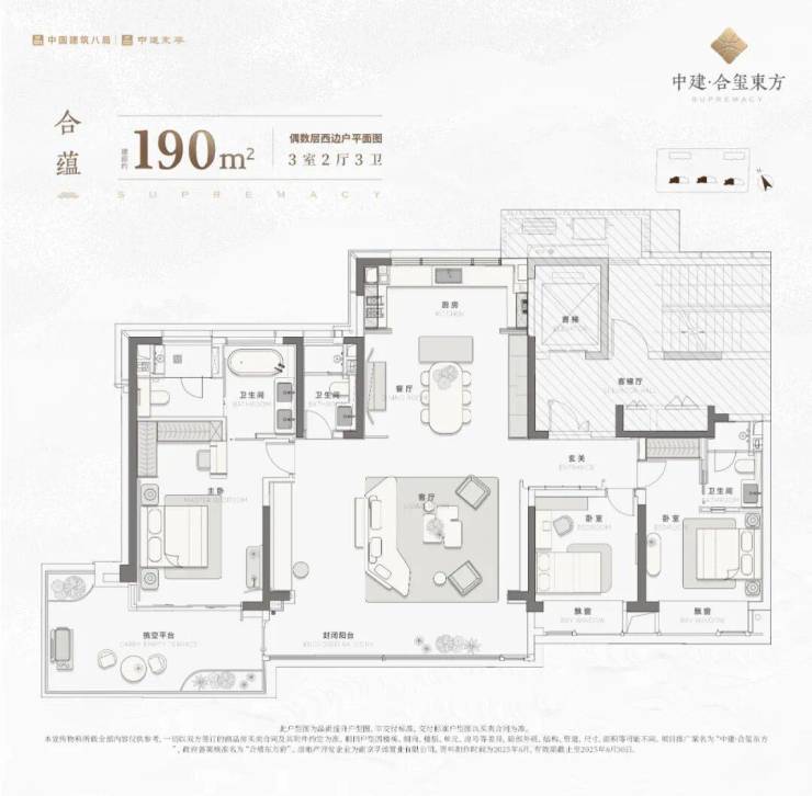 · 户型面积:约190、235、268㎡,近100%得房率