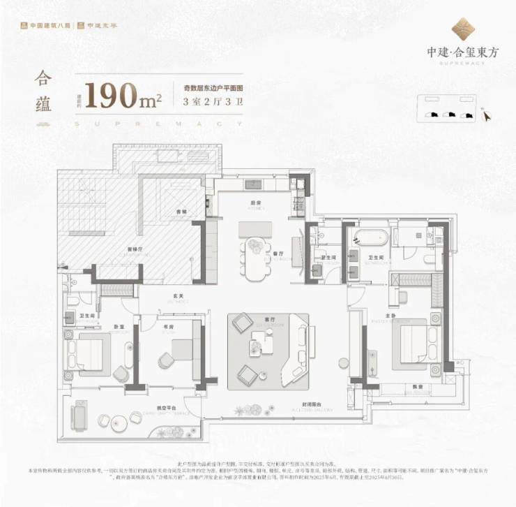 建面约190㎡户型提供三房、四房可选方案,让家成为业主意志的个性化表达